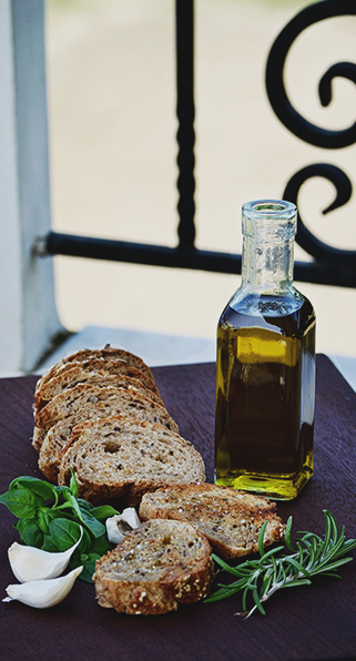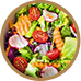 Куриное филе, салат, базилик, помидоры, сыр пармезан, сухарики, чеснок, оливковое масло